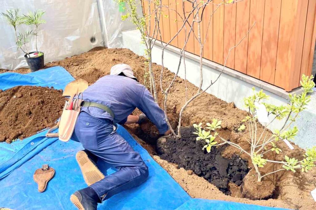 丁寧な外構工事では、植栽を植える前に土を改良し、根がしっかりと張れる環境を整えます。この工程を省いてしまうと、植栽は地表では元気そうに見えても、地下では弱ってしまい、数年後に枯れてしまう原因になります。